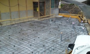 雨が降る中、ガラス取り付けに来てくれました。今までは引き違いのサッシ取り付けというパターンが非常に多かったのですが、ファースの家は窓を開ける必要がないのでFIX窓を多く取り付けました。何かおしゃれな感じです。複層ガラスの間にガスが入っていて夏の高度の高い光は反射して冬の高度の低い光は屈折して部屋に取り入れる仕組みになっています。それと今写真で白く見える壁、これは断熱材です。厚さは2㌢あります。その又内側に、エアライトという吹付け断熱を基礎、壁、天井に吹付けます。