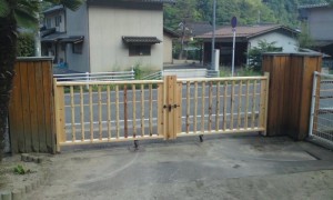 次女の通う保育園から、園庭の門の修繕を依頼されました。柵の一部が外れていましたが、今回新しく作り直しました。木が腐食するのを防ぐために、特殊な液を塗装しています。