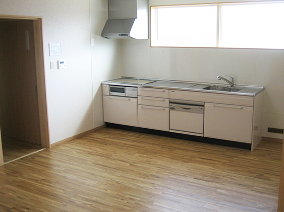 キッチンとダイニングの間に壁をつけて、対面キッチンになっています。