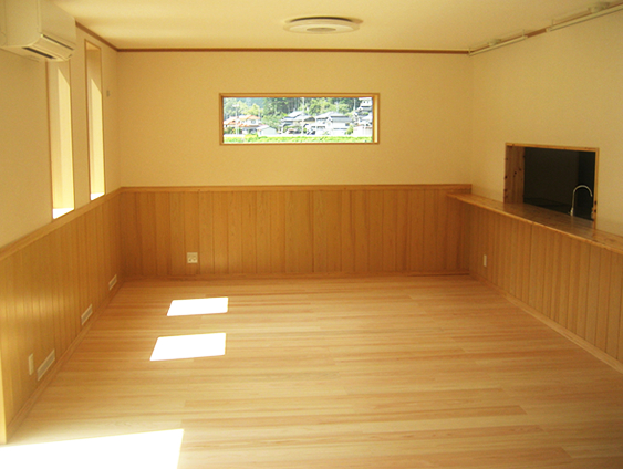 床材は桧の無垢材を使用し、腰壁には桧を使用しています。