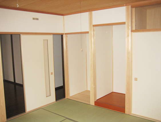 蔵をイメージした和風の家で、部屋ごとにフロアや壁、カーテン等の内装に違いを楽しむ事ができ、収納も十分あります。